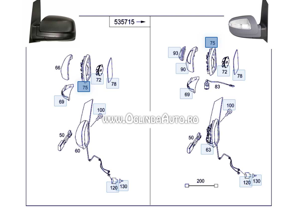 Avem si alte piese pentru Mercedes Vito W639, sticla de oglinda, carcasa, semnalizarea, motoras electric, carcasa oglinzi din spate vopsita in culoarea masinii cat si capacul de oglinda cel din partea de jos negru, pentru oferta trebuie sa alegeti numarul din poza de mai jos.