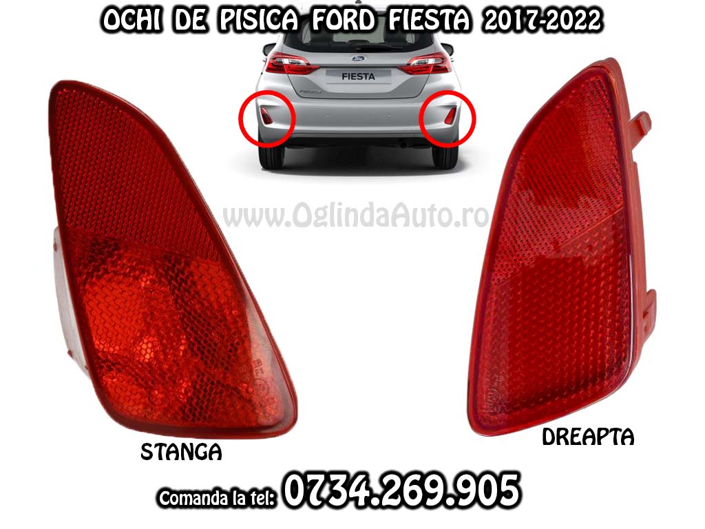 Ford Fiesta VII generatia 7, stop bara spate rosu mai numic si ochi de pisica stanga si dreapta an fabricatie 2017, 2018, 2019, 2020, 2021, 2022, 2023.
