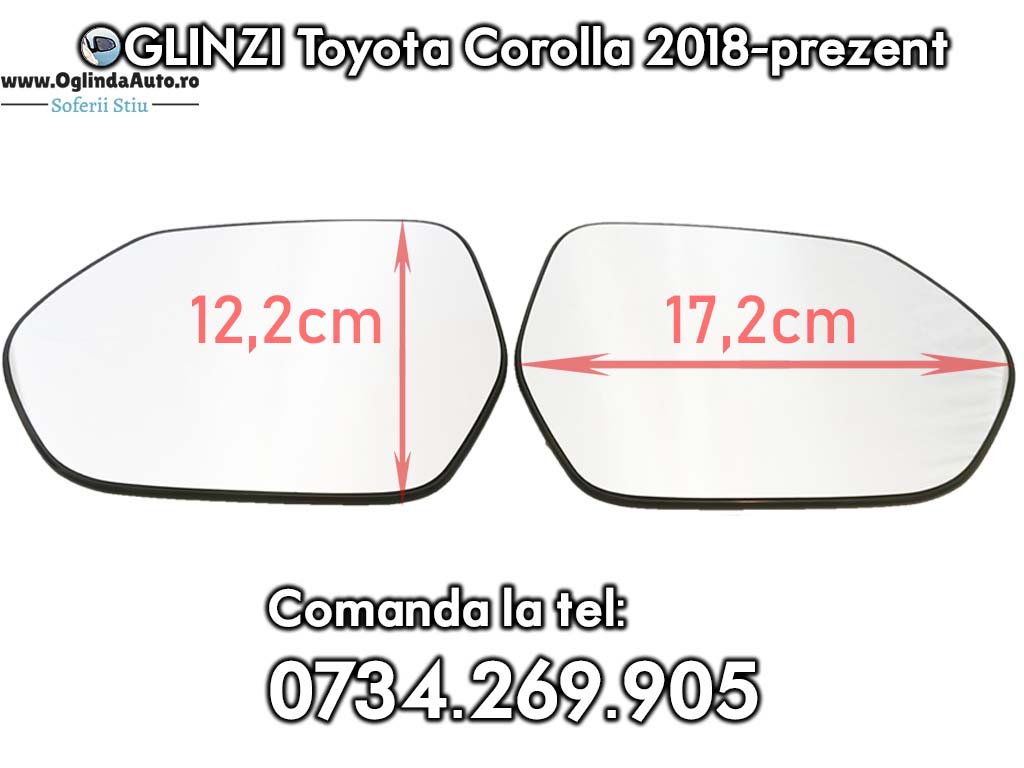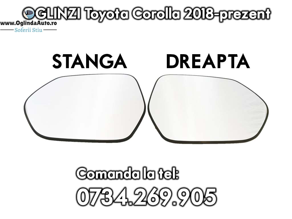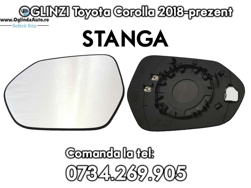 Toyota Corolla (E21) sticla oglinda incalzita cu suport din plastic stanga 10202-303, 3302-303 si dreapta 10201-303, 9301-303 MONTAJ GRATUIT in Bucuresti, an fabricatie 2018, 2019, 2020, 2021, 2022, 2023, 2024, 2025.